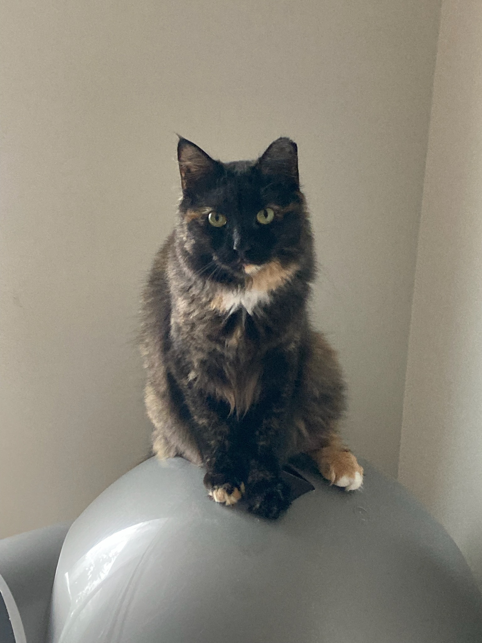 Houjicha (Hoochie) bolted out the front door near Bulls Head Road and Ridge Road. She is a long-haired tourtiseshell cat who is indoors only. She does not have her collar on. Houjicha is very, very skiddish; it is possible she may be in hiding. Normally, she is responsive to her name "Houjicha" or "Hoochie", but