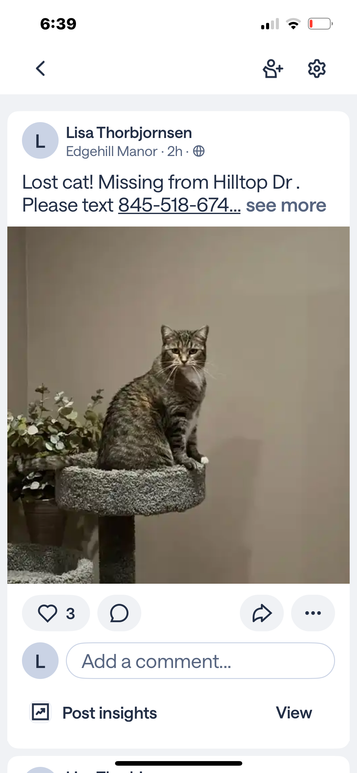 My cat has been missing since 11am Saturday from Edgehill Manor in Wappingers Falls