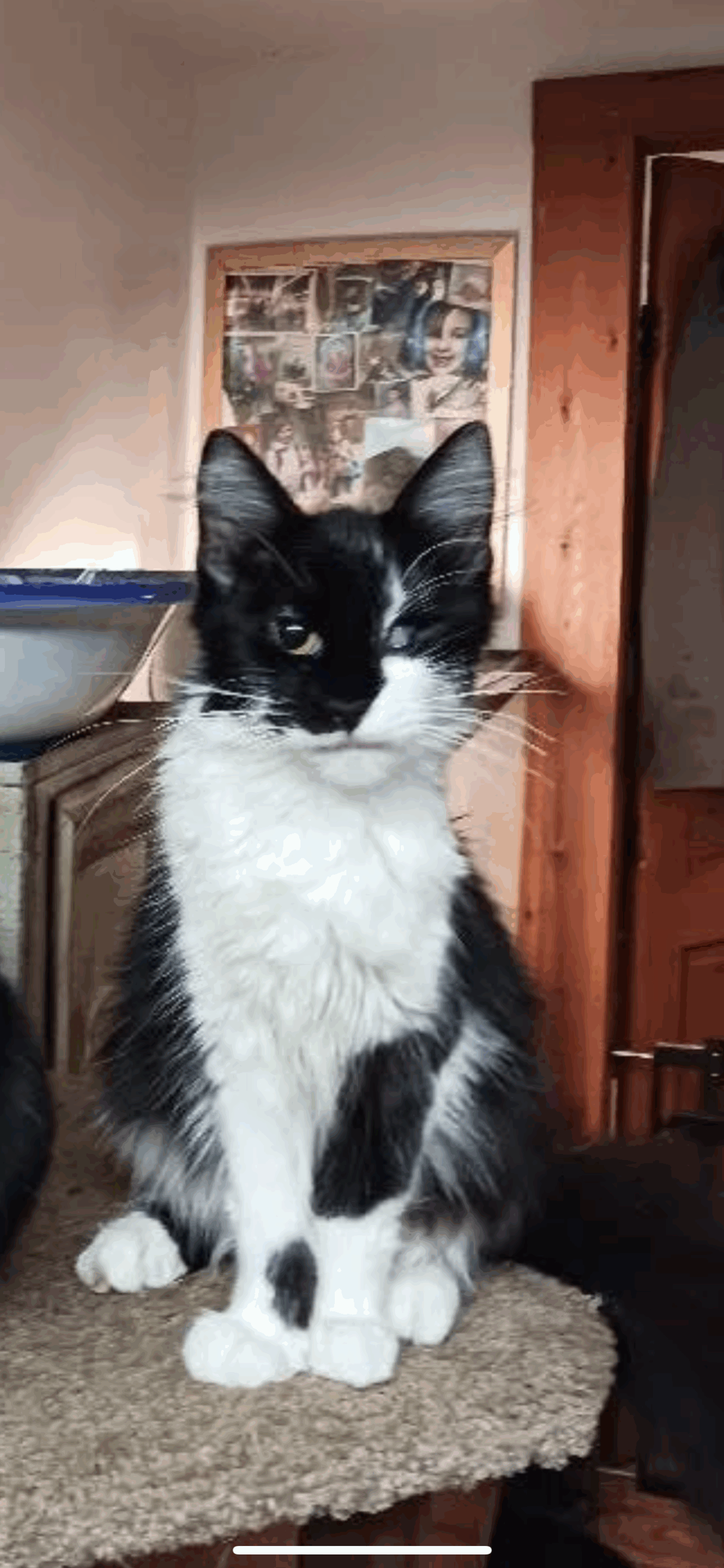 Small, fluffy, blind in one eye and deformed left side of face due to dog attack at 4 months old.